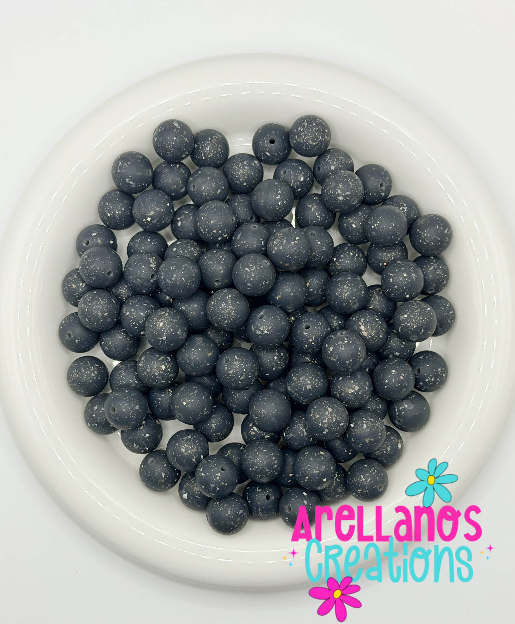 SS-151 15mm Midnight Grey Speckled Silicone Bead (1ct)