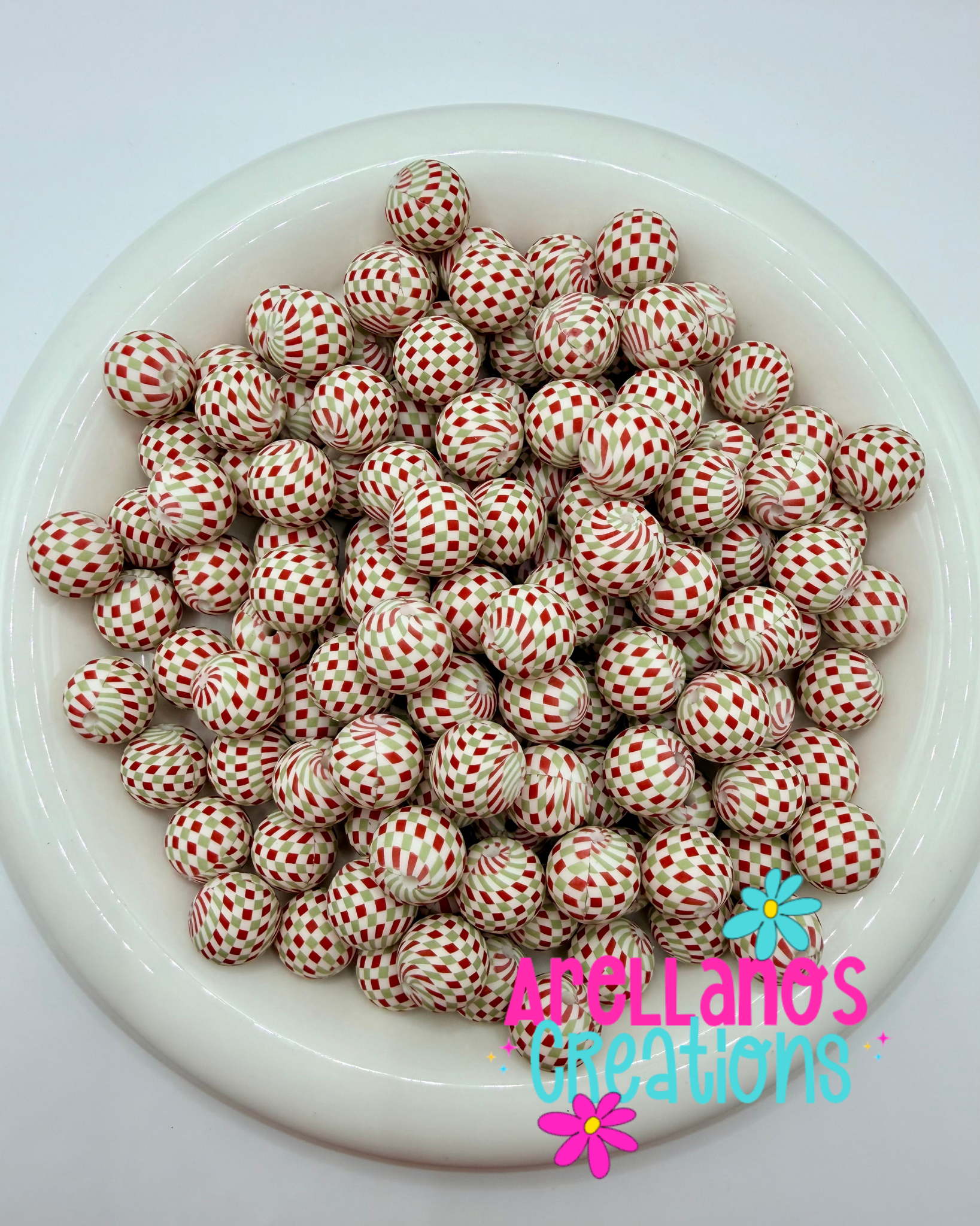 15mm tis the season checkered printed silicone beads